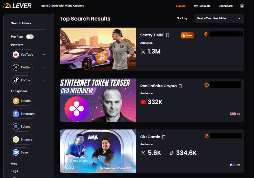 Limited Creator Pool: Lever focuses primarily on crypto/Web3 creators. If you’re targeting broader audiences, options may be constrained.